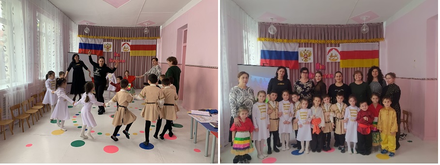 Дружно спели песню «Нǣ Ирыстон», а Мадина Худиева и Ахсар Меликов рассказали стихи про Осетию и родной язык. Вспомнили пословицы русские и осетинские.  Поиграли в русскую народную игру «Заря», Хакасскую народную игру «Медведь и пень» и осетинская народная игра «Гаггырис».